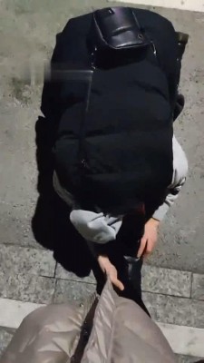 梵高黑色底裤短靴路人踩踏- 视频编号:17982X1
