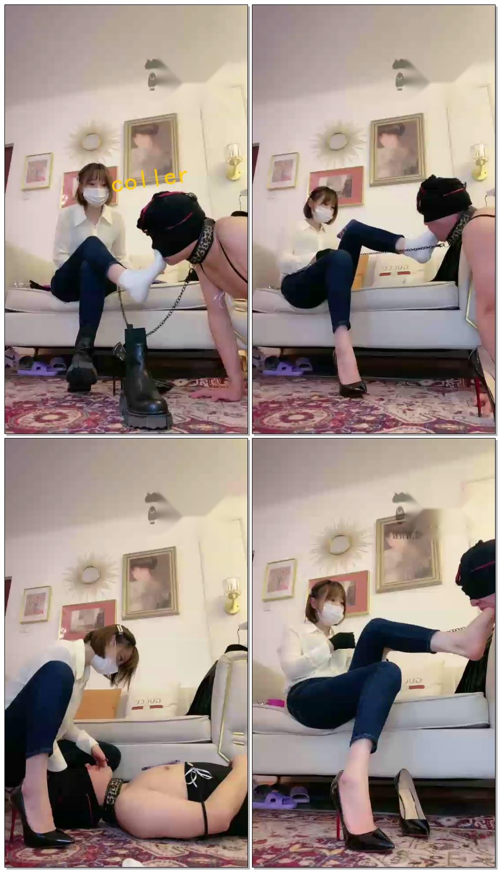 中山梦梦女神运动内衣肉丝腿绞臭袜子踩小偷脸上