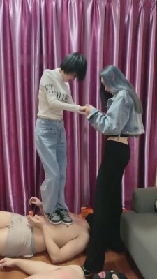 【麋鹿银儿】超颜值三女斯踢头踩头天花板【78分钟】