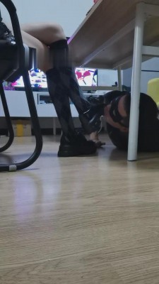 【乐爷】桌底下-长靴蹂躏地毯狗/踩踏喂食